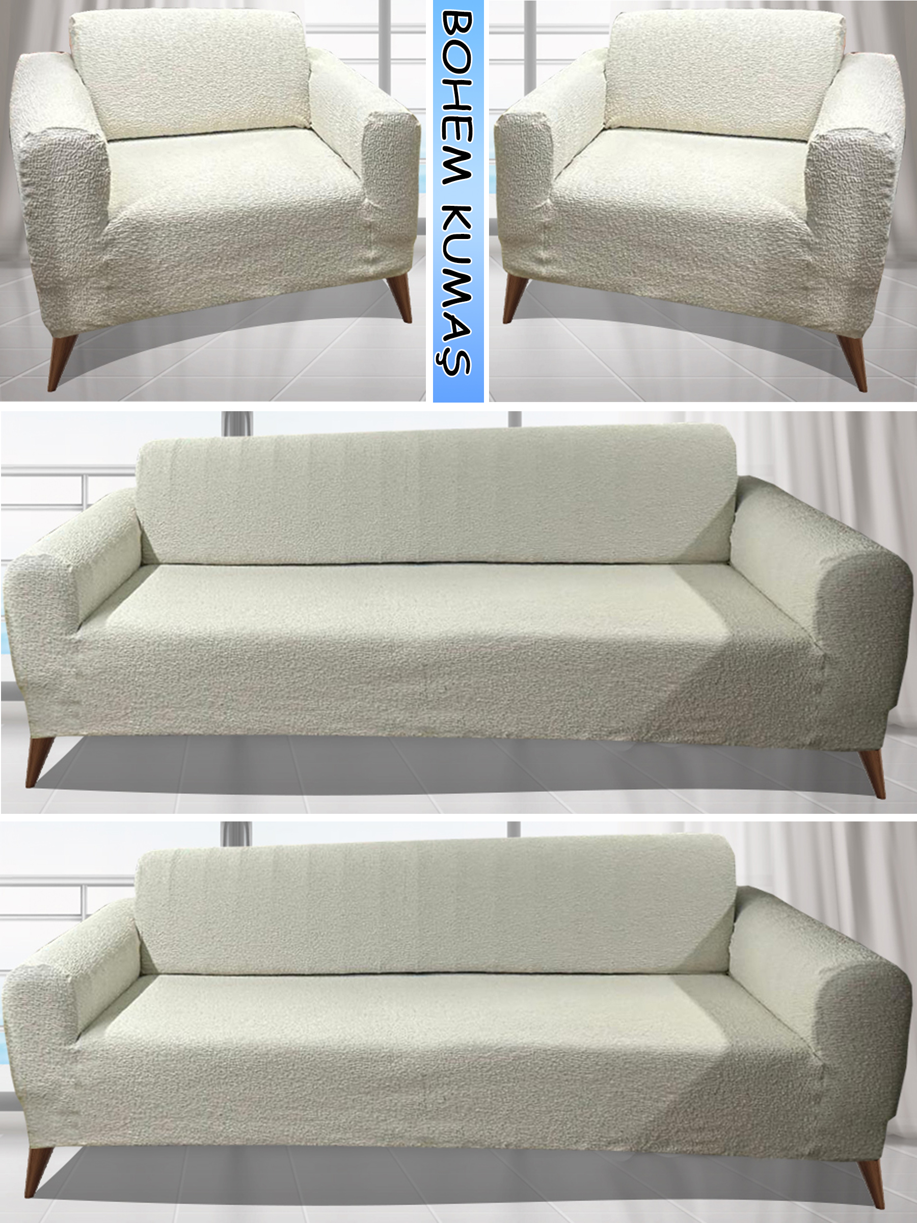 KREM RENGİ LUX BOHEM PAMUKLU KUMAŞ KOLTUK KILIFI SETİ - 3+3+1+1 SET 7 KG GELMEKTEDİR. KALIN VE DAYANIKLIDIR.