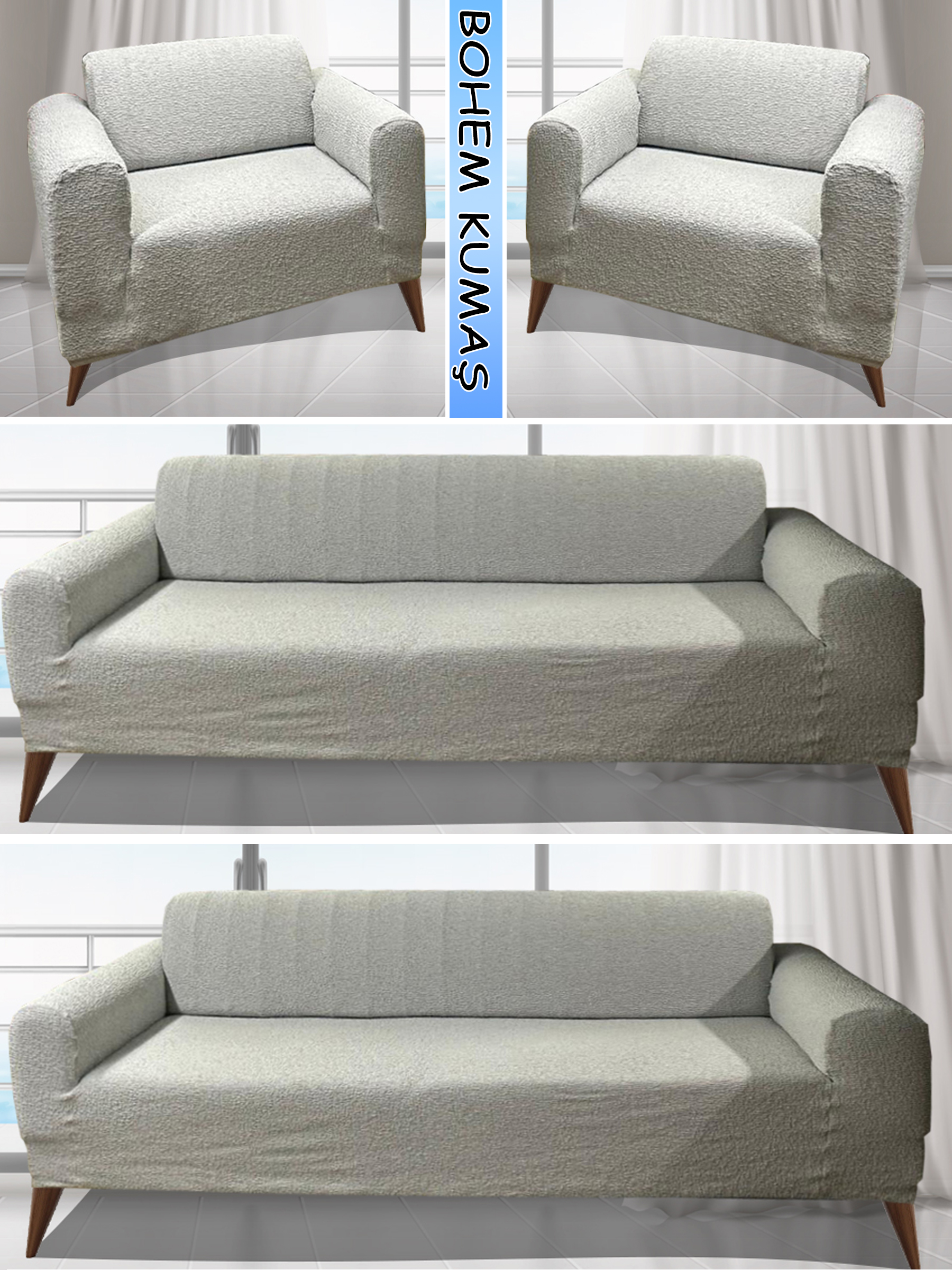 AÇIK GRİ LUX BOHEM PAMUKLU KUMAŞ KOLTUK KILIFI SETİ - 3+3+1+1 SET 7 KG GELMEKTEDİR. KALIN VE DAYANIKLIDIR.