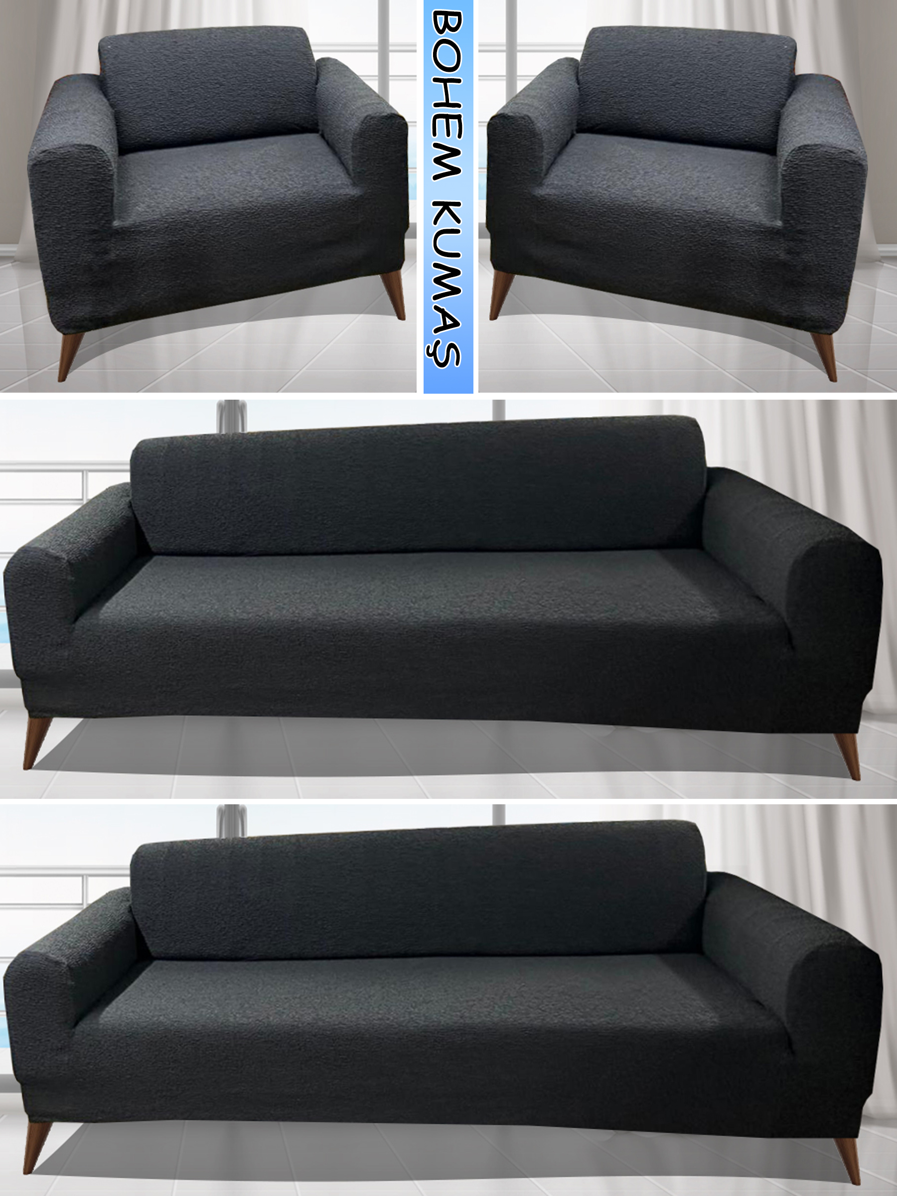 ANTRASİT RENGİ LUX BOHEM PAMUKLU KUMAŞ KOLTUK KILIFI SETİ - 3+3+1+1 SET 7 KG GELMEKTEDİR. KALIN VE DAYANIKLIDIR.