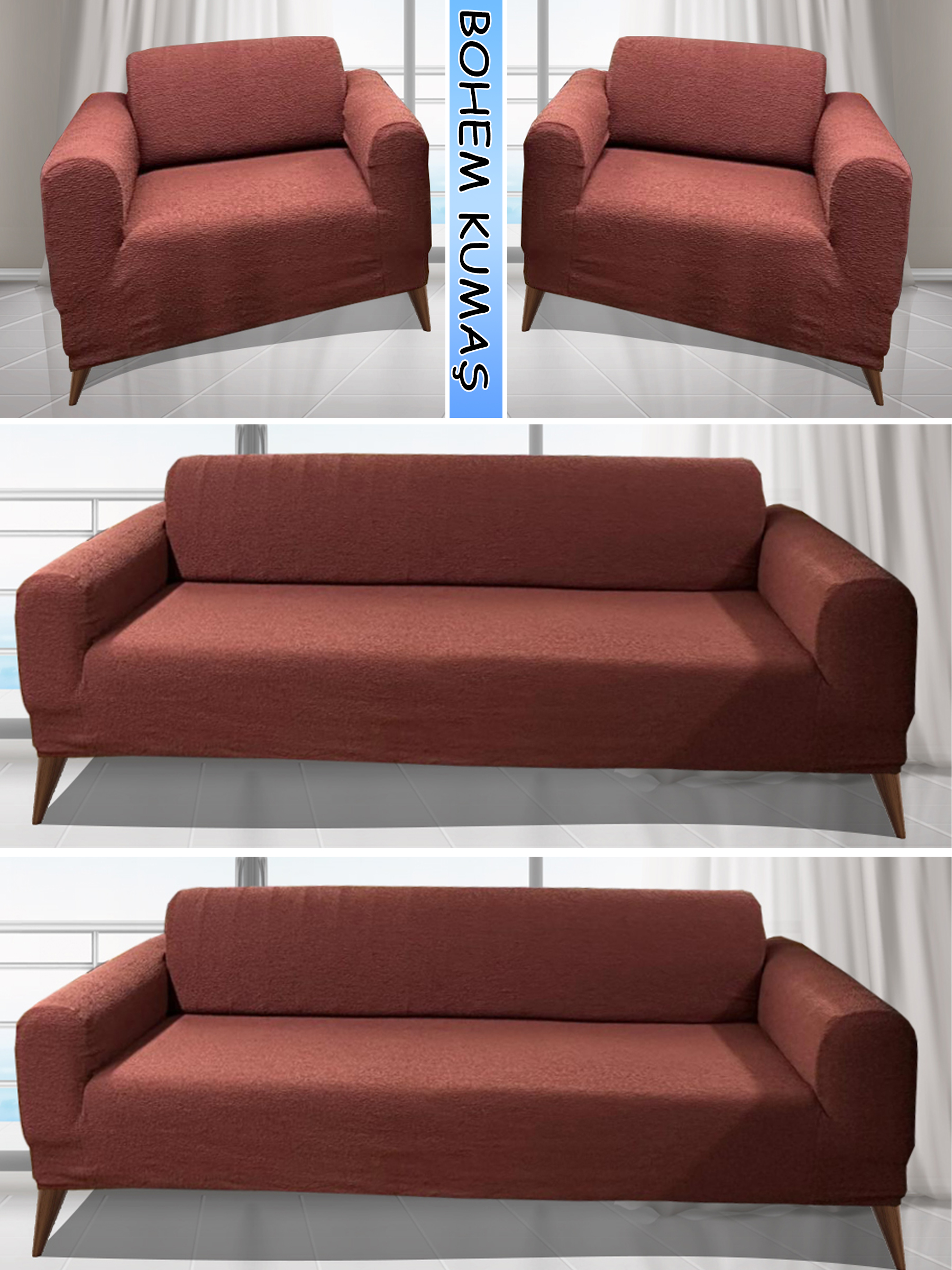 KİREMİT RENGİ LUX BOHEM PAMUKLU KUMAŞ KOLTUK KILIFI SETİ - 3+3+1+1 SET 7 KG GELMEKTEDİR. KALIN VE DAYANIKLIDIR.