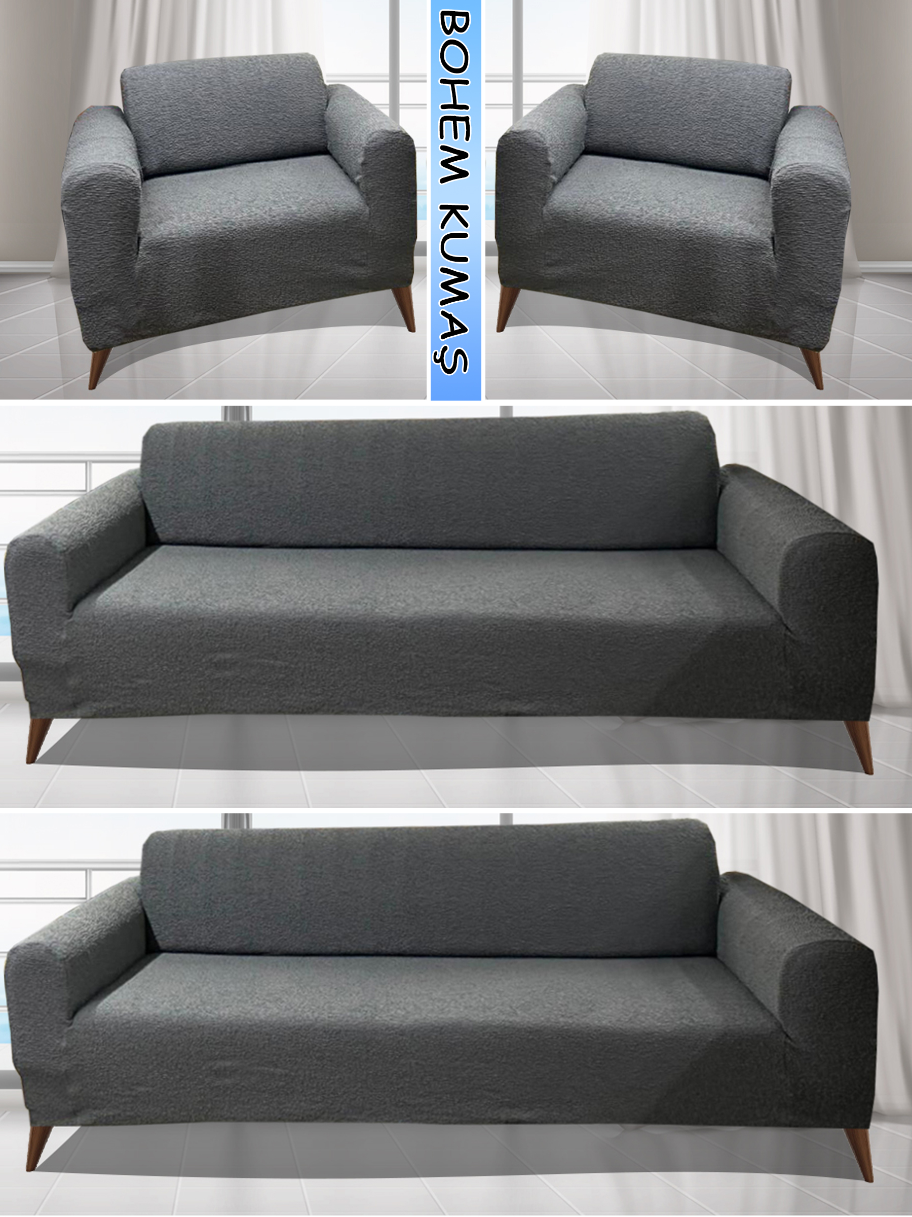 KOYU GRİ LUX BOHEM PAMUKLU KUMAŞ KOLTUK KILIFI SETİ - 3+3+1+1 SET 7 KG GELMEKTEDİR. KALIN VE DAYANIKLIDIR.