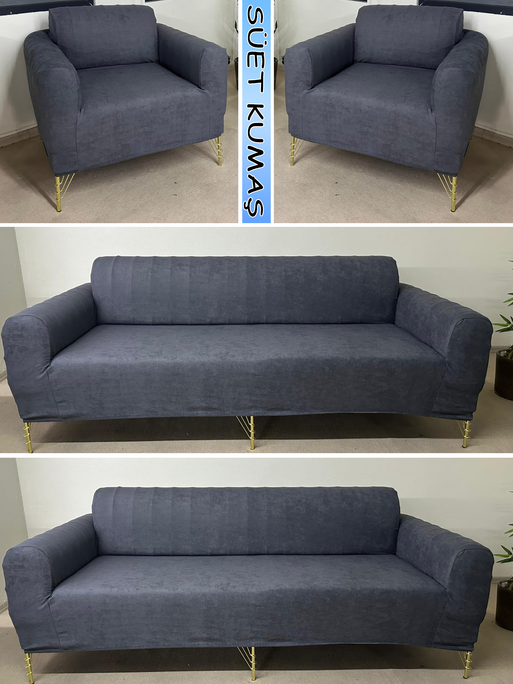 ANTRASİT SÜET KUMAŞ 3+3+1+1 SET KOMPLE GİYDİRME KOLTUK KILIFI KANEPE,ÇEKYAT,BERJER