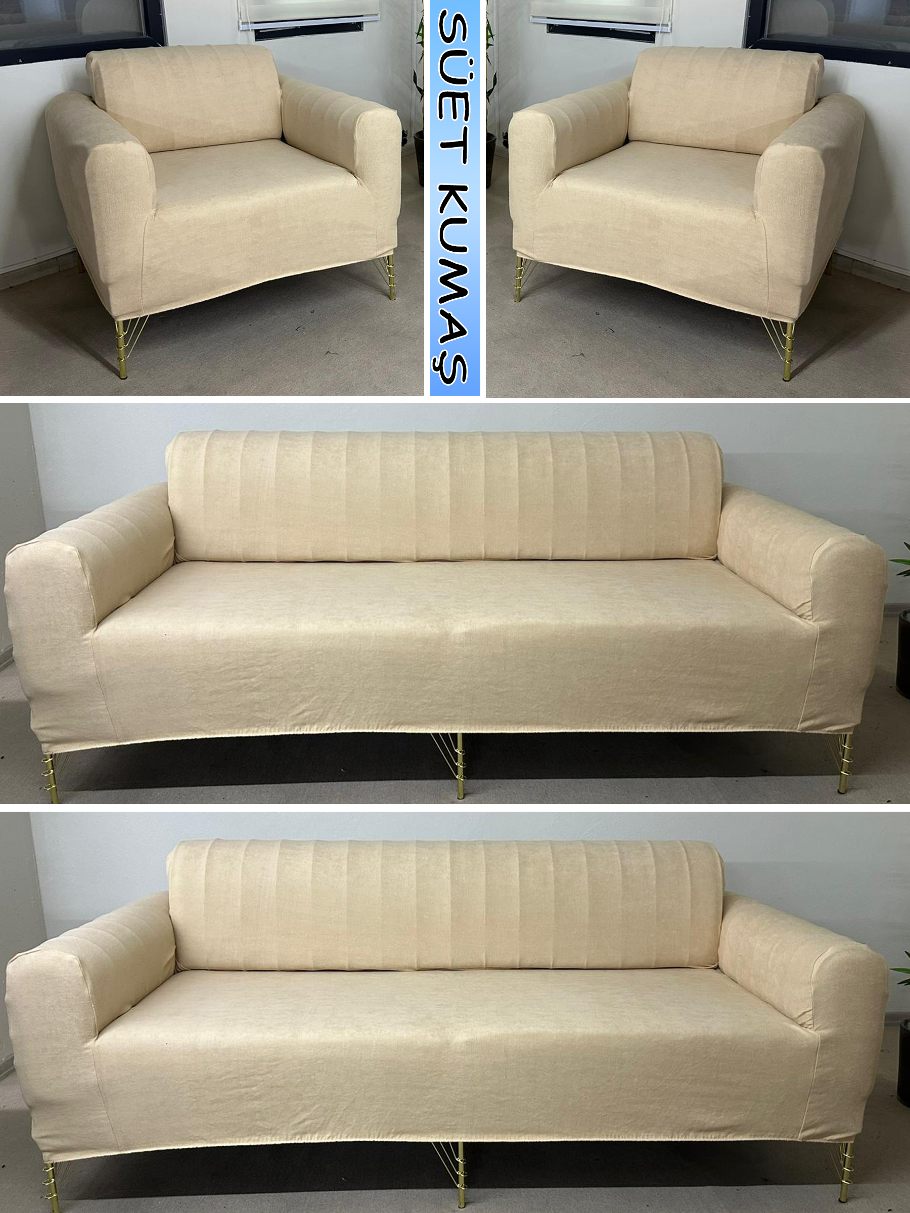 BEJ SÜET KUMAŞ 3+3+1+1 SET KOMPLE GİYDİRME KOLTUK KILIFI KANEPE,ÇEKYAT,BERJER