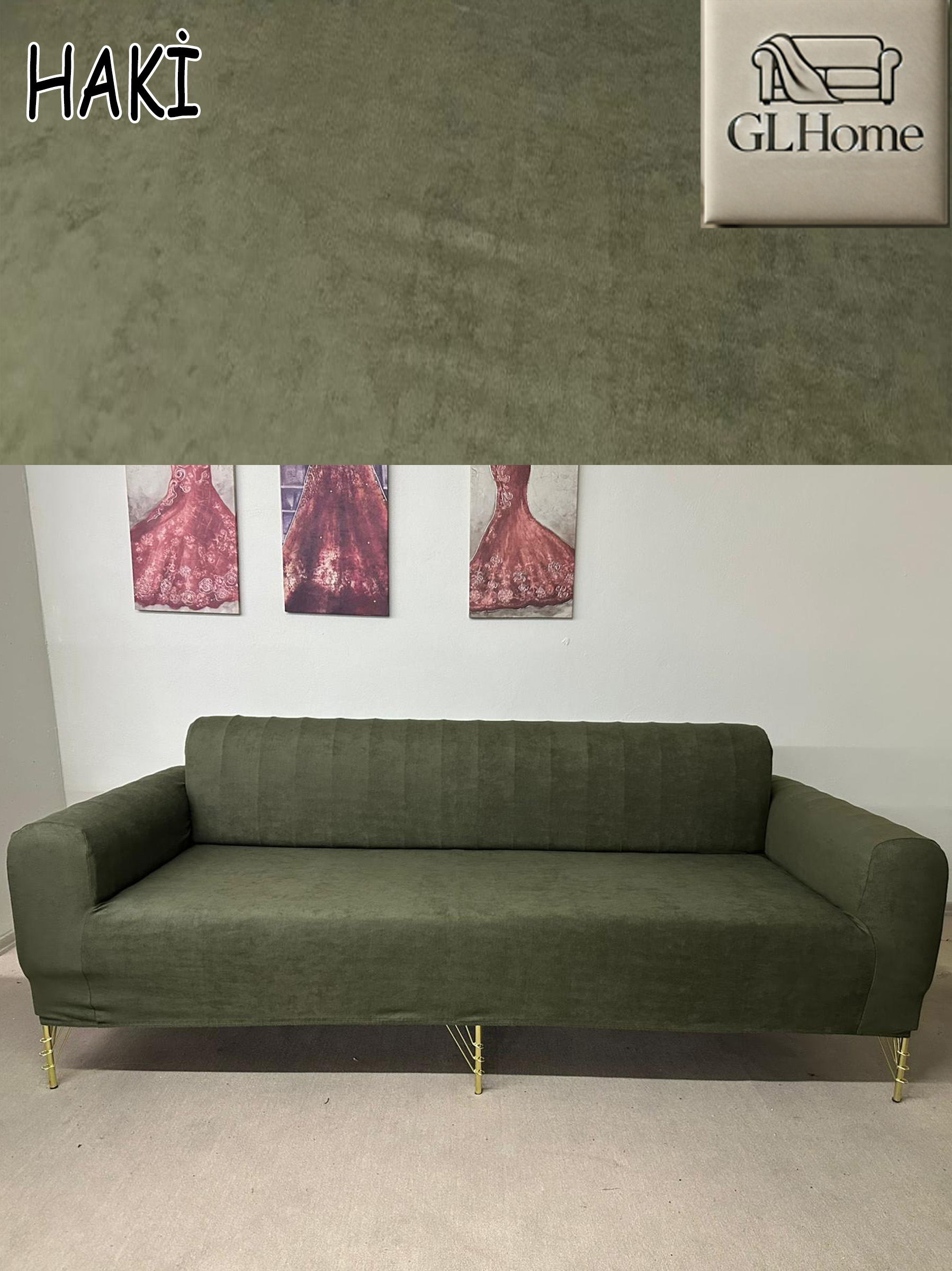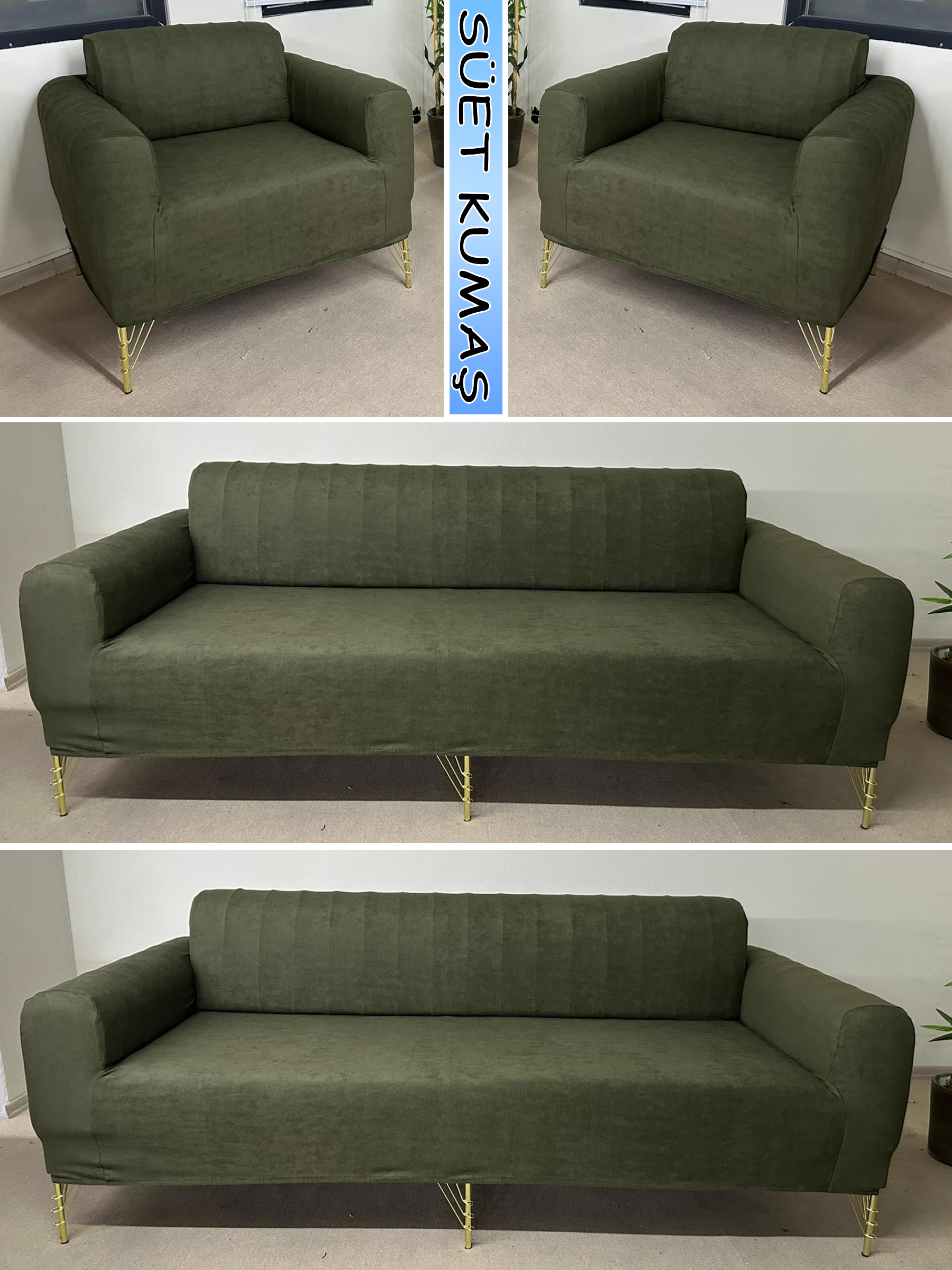HAKİ SÜET KUMAŞ 3+3+1+1 SET KOMPLE GİYDİRME KOLTUK KILIFI KANEPE,ÇEKYAT,BERJER
