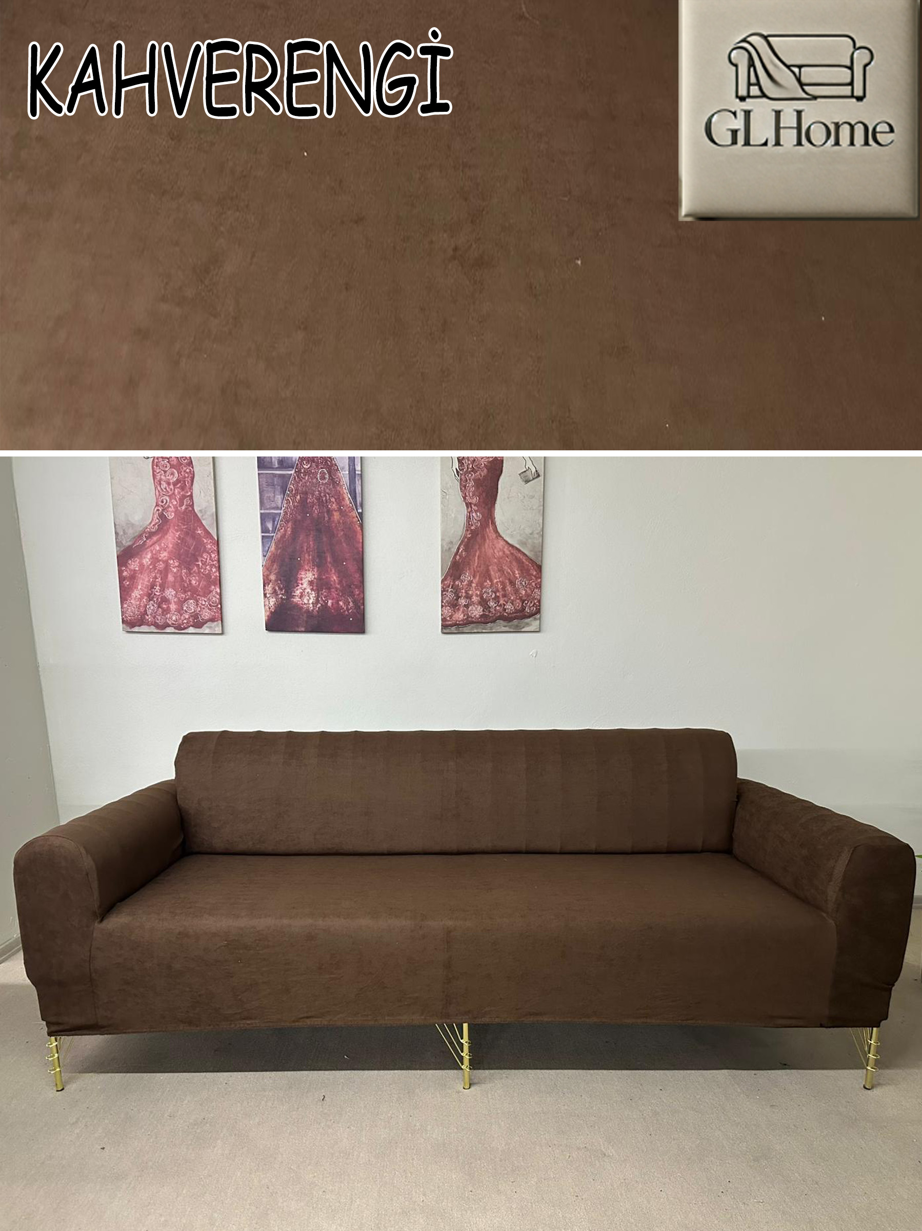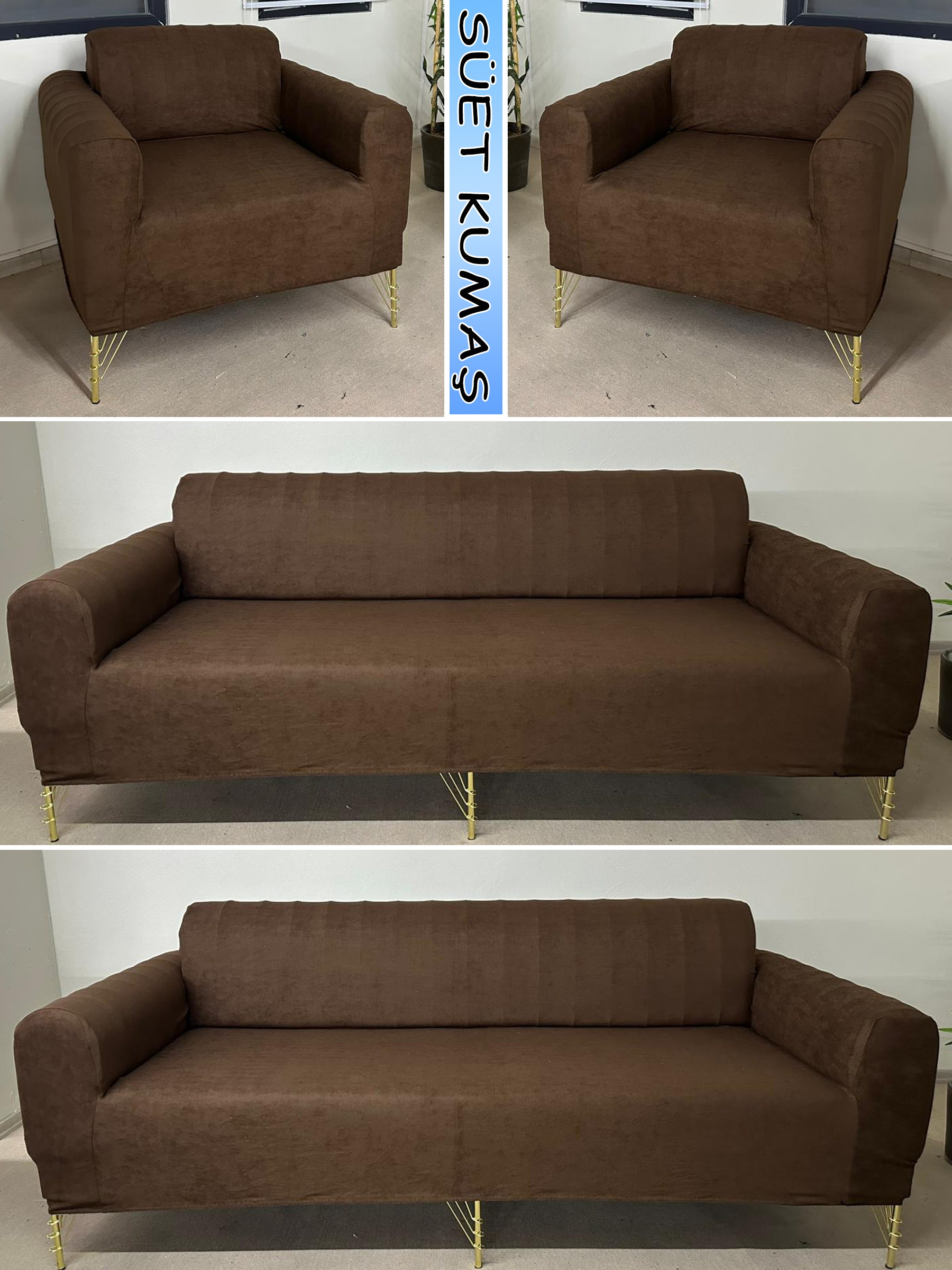 KAHVERENGİ SÜET KUMAŞ 3+3+1+1 SET KOMPLE GİYDİRME KOLTUK KILIFI KANEPE,ÇEKYAT,BERJER