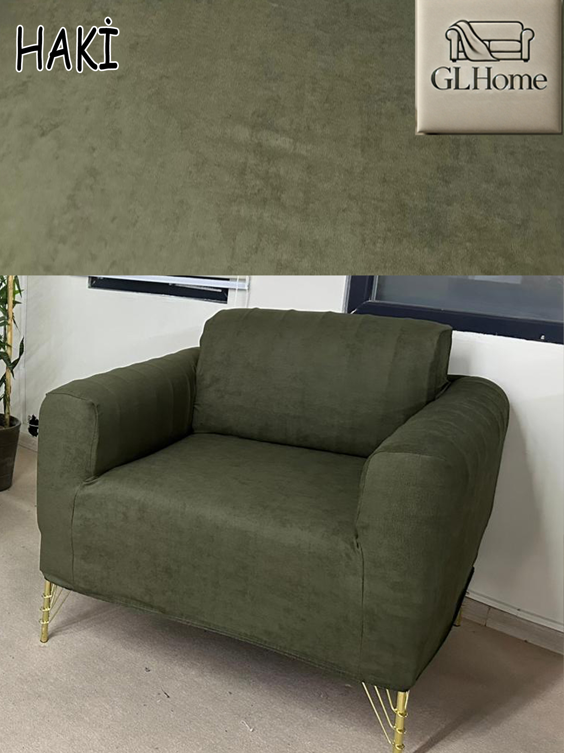 HAKİ SÜET KUMAŞ 3+3+1+1 SET KOMPLE GİYDİRME KOLTUK KILIFI KANEPE,ÇEKYAT,BERJER