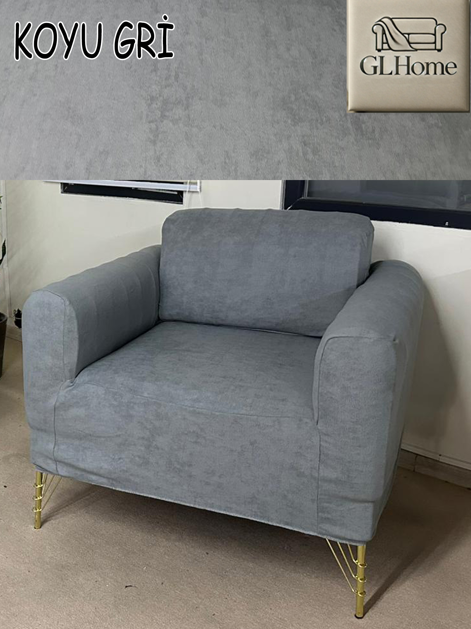 KOYU GRİ SÜET KUMAŞ TEKLİ&BERJER KOMPLE GİYDİRME KOLTUK KILIFI